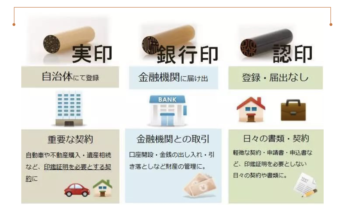 1、要准备两个圆形印章,一个刻全名,一个只刻姓。日本是印章使用国家,什么地方都要印章。例如在收货时、工作文书上、区役所的搬家文件中、银行的业务办理中,总是会用到印章的。