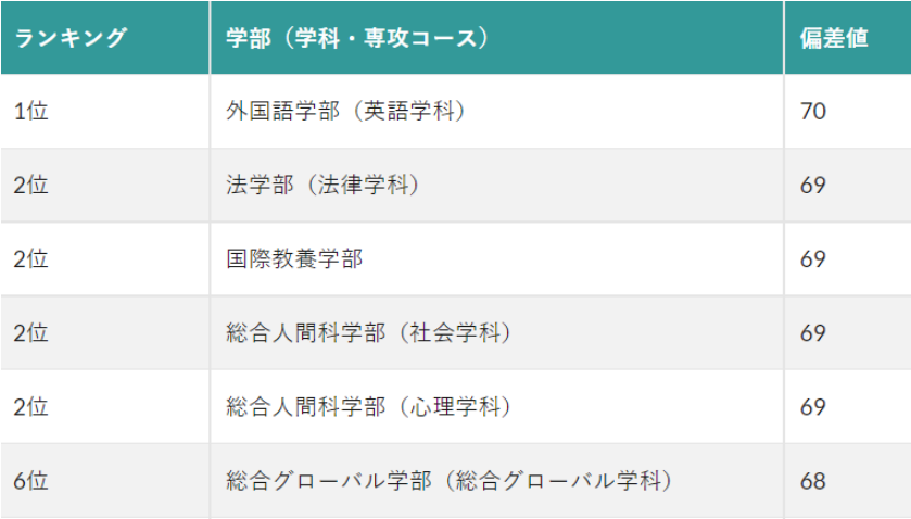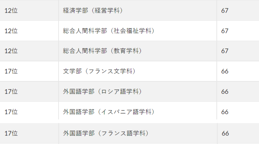 上智大学是入学难度最大的私立文科大学,偏差值难度在私立大学中仅次于庆应义塾大学和早稻田大学,位居第三,其所有学部学院的平均偏差值达到了66.4,实际上已经与早稻田大学的66.7相差无几。