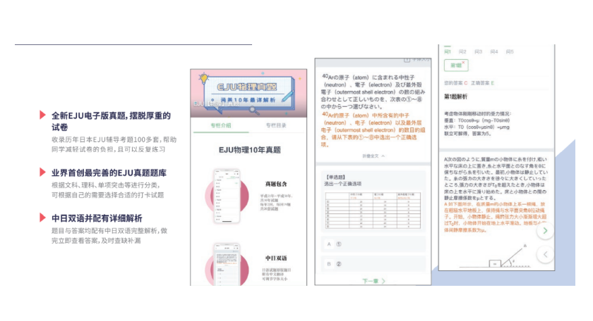 涵盖日本初中、高中、EJU各个项目的辅导教材题库,可反复刷题训练